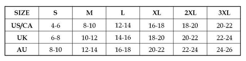 S, M, L, XL, 2XL, 3XL